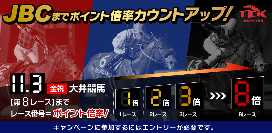 【特典】11/3大井競馬【第8レース】までレース番号=ポイント倍率!