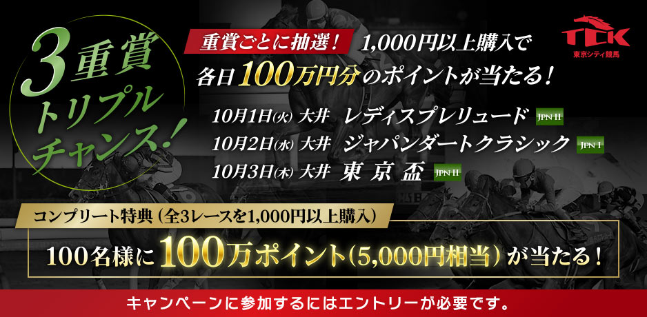 【コンプリート特典】TCKトリプル重賞を全レース1,000円以上購入すると、