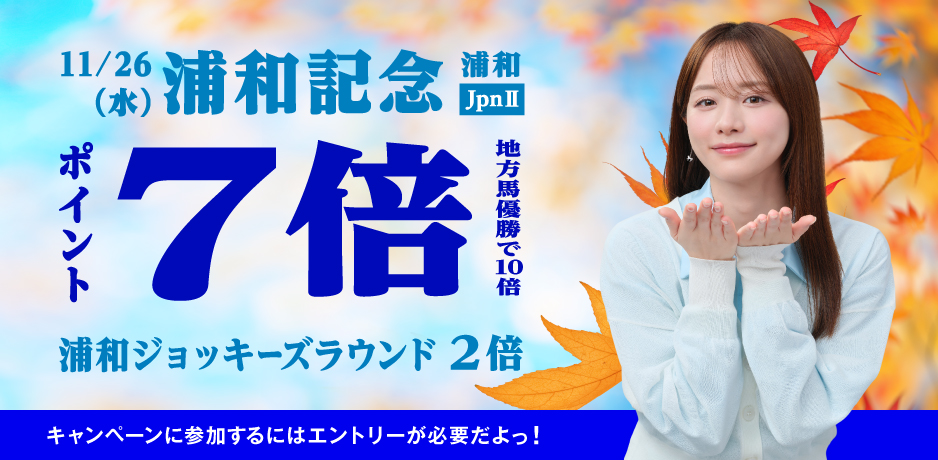 【特典1】浦和記念購入でポイント7倍!(地方所属馬優勝で10倍!)
