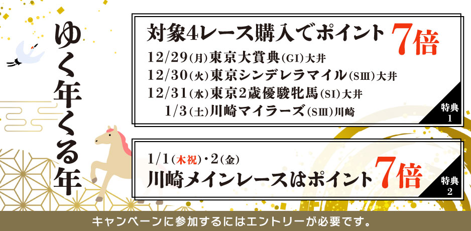 【特典2】1/1、1/2川崎競馬【メインレース】はポイント7倍!