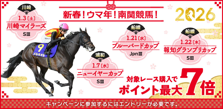 【特典】対象レース購入でポイント最大7倍!