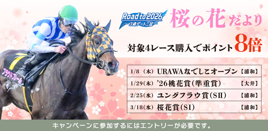 【特典】桜花賞路線4レース購入でポイント8倍!