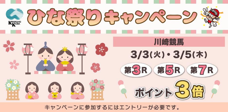 【特典】3/3、3/5川崎競馬【第3、第5、第7レース】はポイント3倍!